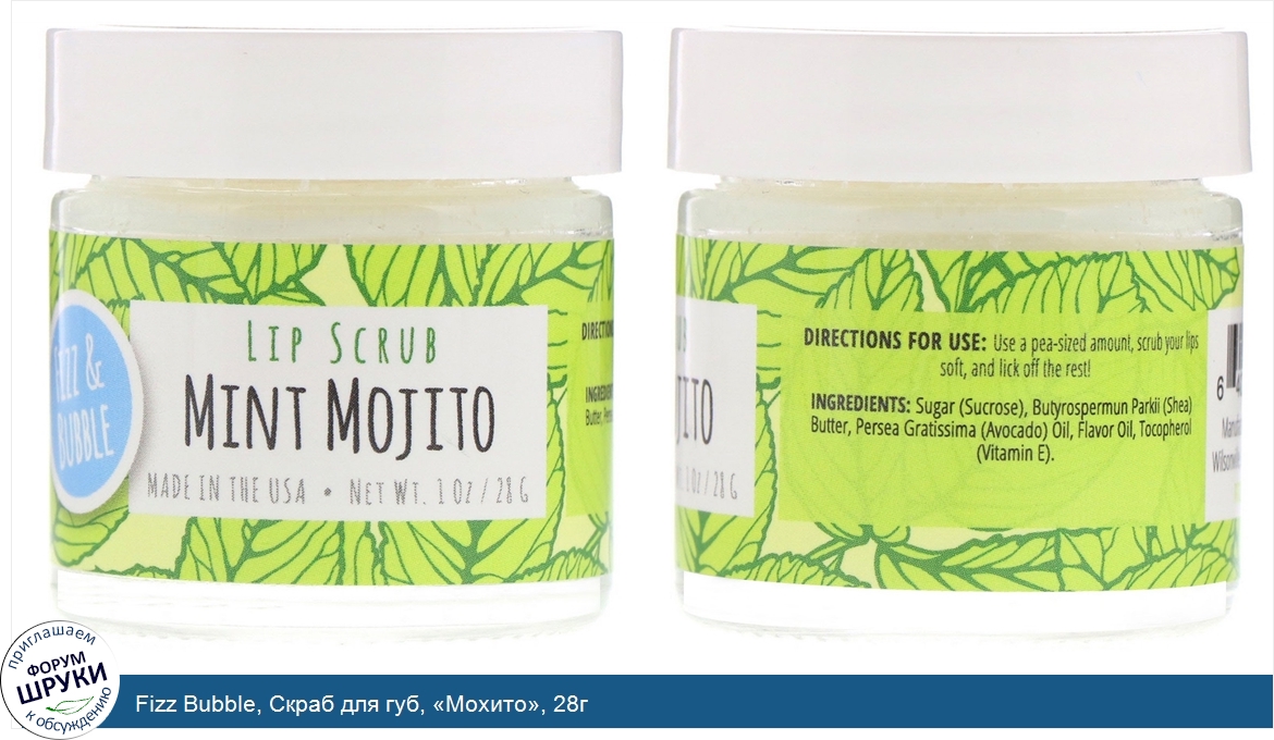 Fizz Bubble, Скраб для губ, «Мохито», 28г