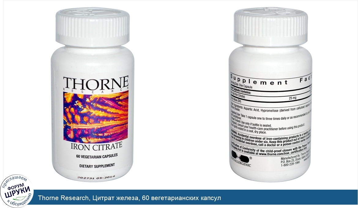Друзья, если у вас есть отзыв/дополнение/комментарий/вопрос относительно Thorne Research, Цитрат железа, 60 вегетарианских капсул - напишите его ответом в эту тему (это будет полезно всему сообществу в целом и вам в отдельности).