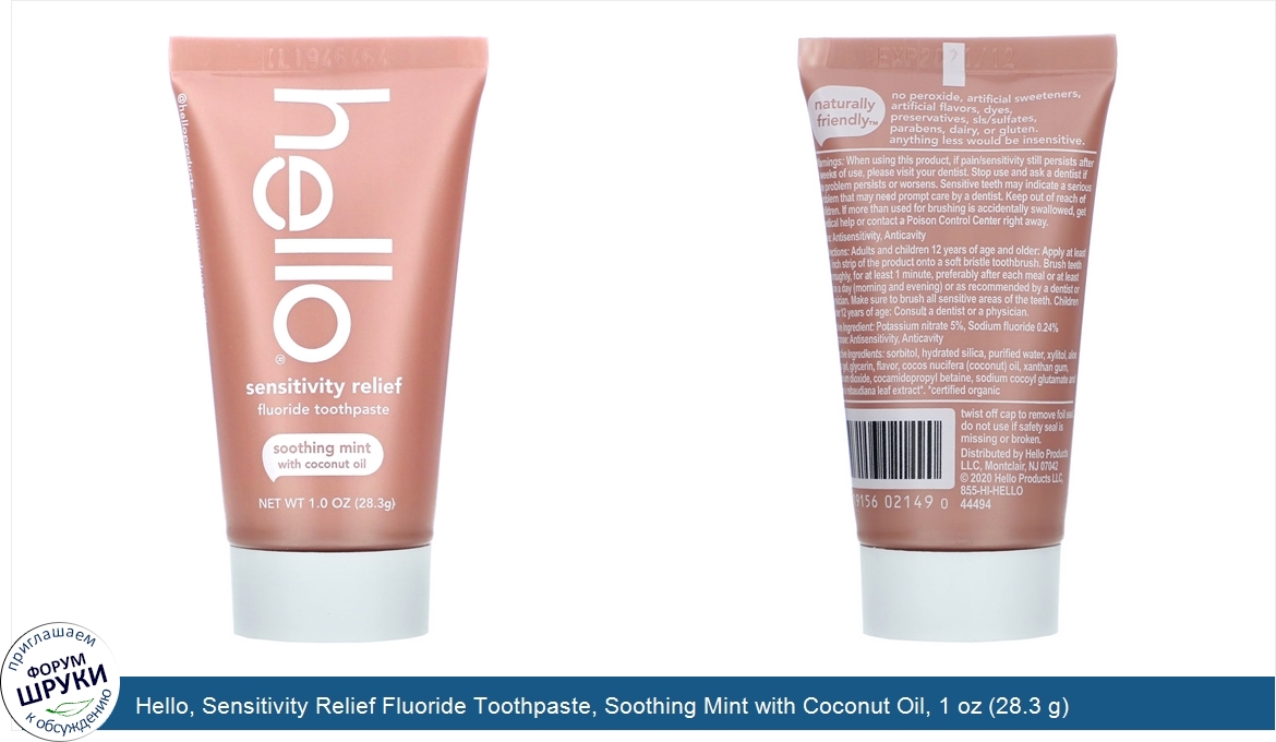 Друзья, если у вас есть отзыв/дополнение/комментарий/вопрос относительно Hello, Sensitivity Relief Fluoride Toothpaste, Soothing Mint with Coconut Oil, 1 oz (28.3 g) - напишите его ответом в эту тему (это будет полезно всему сообществу в целом и вам в отдельности).
