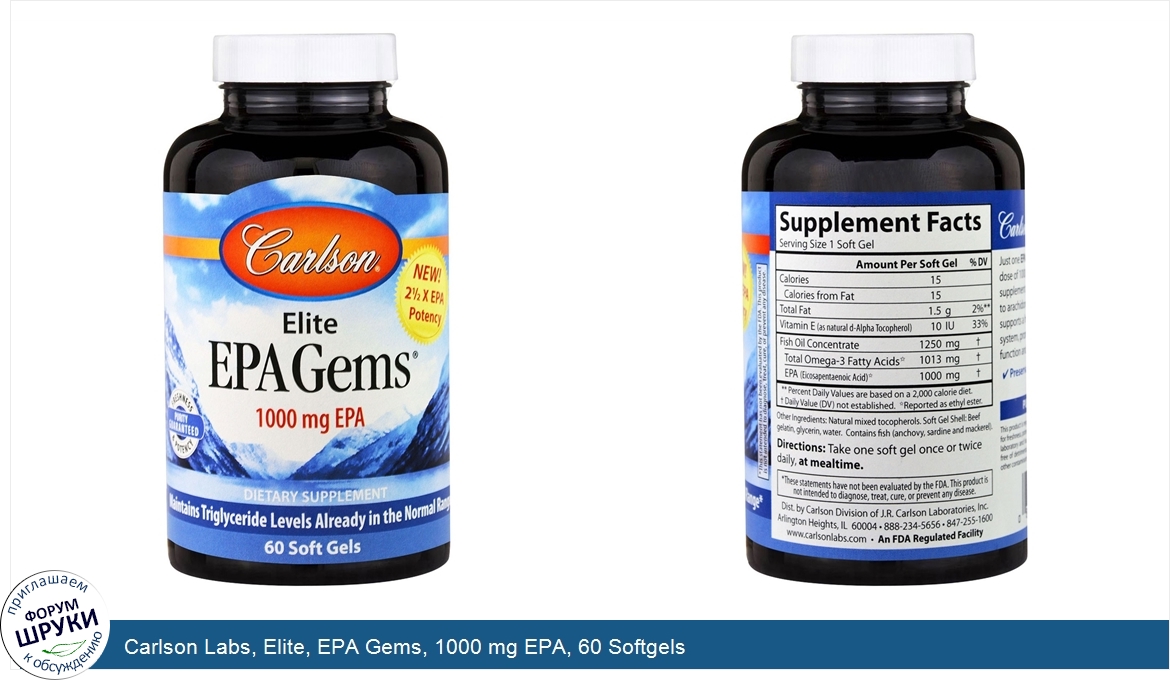 Друзья, если у вас есть отзыв/дополнение/комментарий/вопрос относительно Carlson Labs, Elite, EPA Gems, 1000 mg EPA, 60 Softgels - напишите его ответом в эту тему (это будет полезно всему сообществу в целом и вам в отдельности).