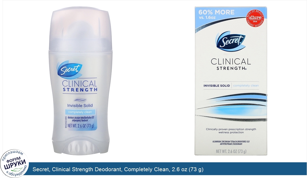 Secret, Clinical Strength Deodorant, Completely Clean, 2.6 oz (73 g)