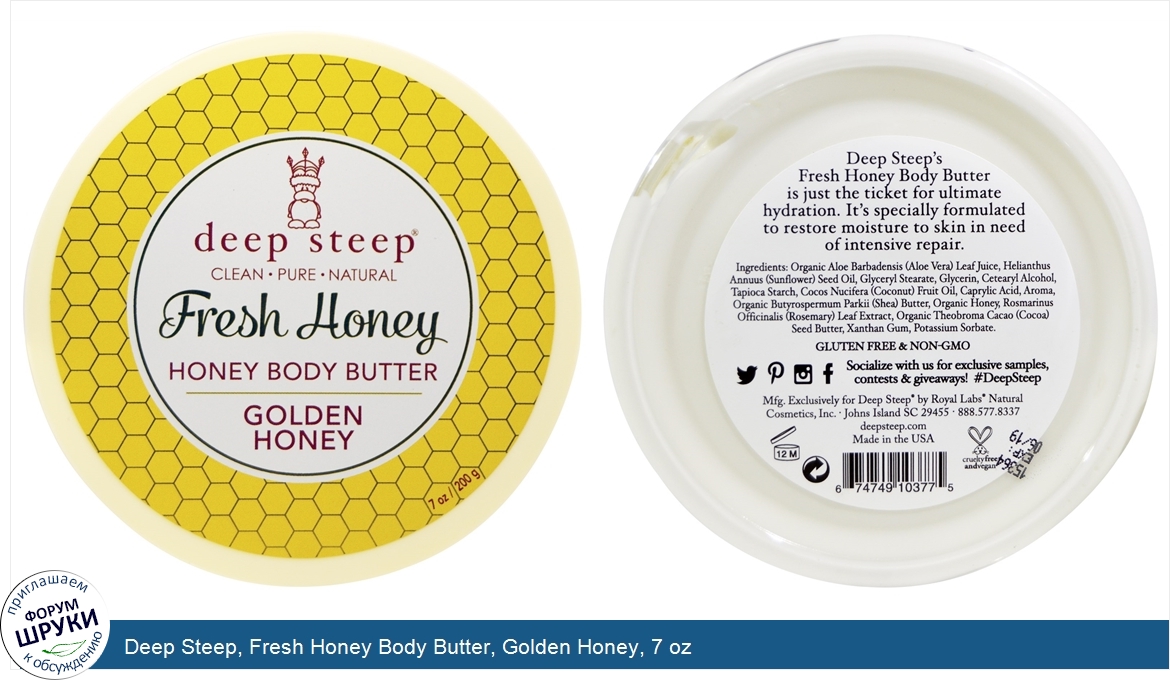 Друзья, если у вас есть отзыв/дополнение/комментарий/вопрос относительно Deep Steep, Fresh Honey Body Butter, Golden Honey, 7 oz - напишите его ответом в эту тему (это будет полезно всему сообществу в целом и вам в отдельности).