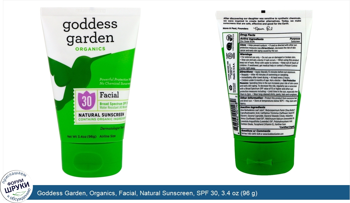 Друзья, если у вас есть отзыв/дополнение/комментарий/вопрос относительно Goddess Garden, Organics, Facial, Natural Sunscreen, SPF 30, 3.4 oz (96 g) - напишите его ответом в эту тему (это будет полезно всему сообществу в целом и вам в отдельности).