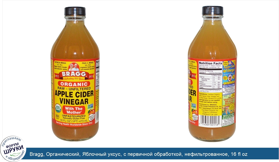 Друзья, если у вас есть отзыв/дополнение/комментарий/вопрос относительно Bragg, Органический, Яблочный уксус, с первичной обработкой, нефильтрованное, 16 fl oz (473 мл) - напишите его ответом в эту тему (это будет полезно всему сообществу в целом и вам в отдельности).