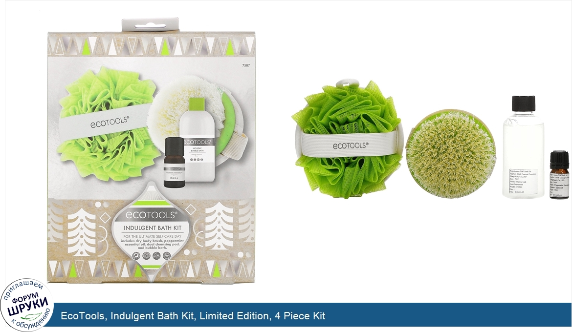 Друзья, если у вас есть отзыв/дополнение/комментарий/вопрос относительно EcoTools, Indulgent Bath Kit, Limited Edition, 4 Piece Kit - напишите его ответом в эту тему (это будет полезно всему сообществу в целом и вам в отдельности).