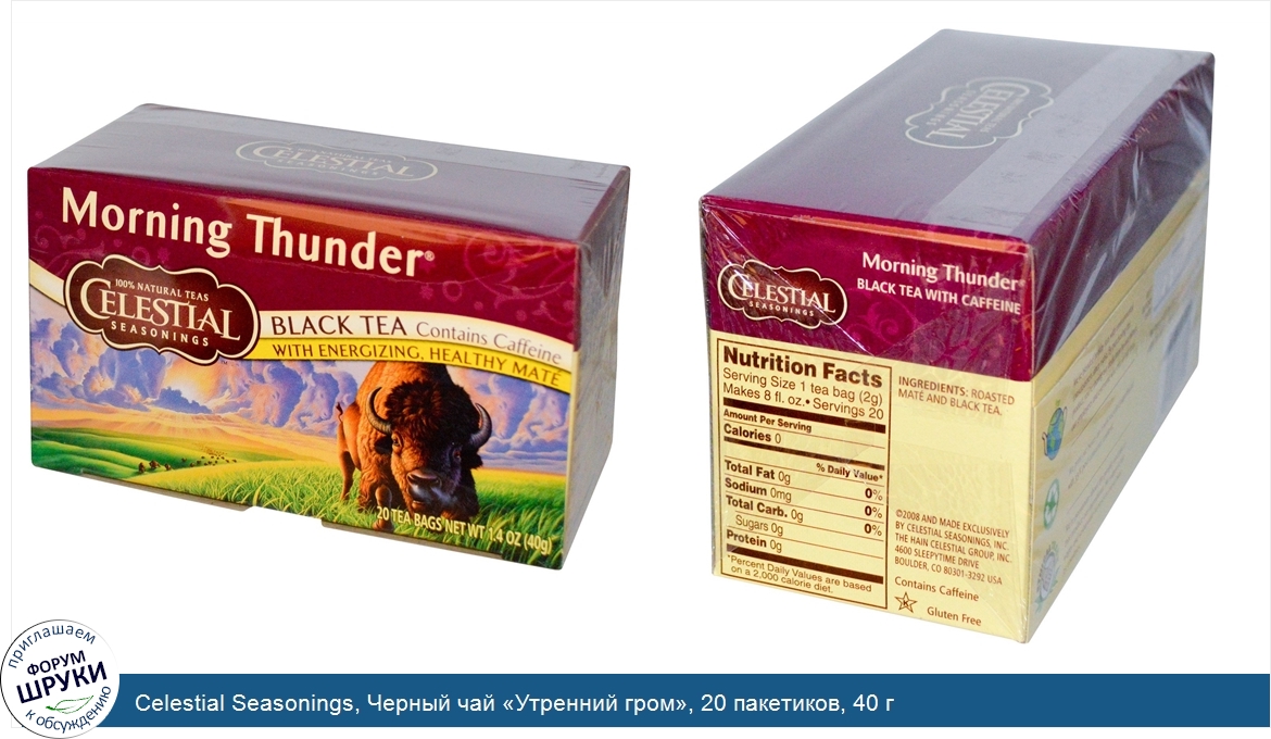 ru Celestial Seasonings, Черный чай «Утренний гром», 20 пакетиков, 40 г