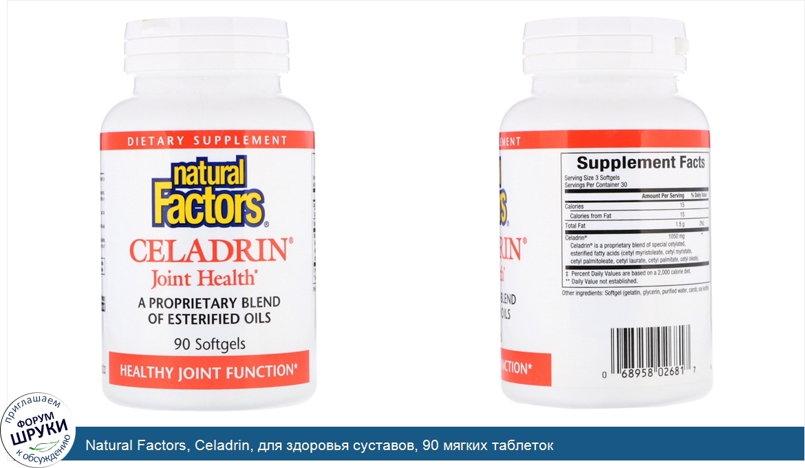 Категории: Natural Factors, Пищевые добавки, Здоровье пожилых людей, Celadrin, Кости, суставы и хрящи, Натурал Факторс, 2548