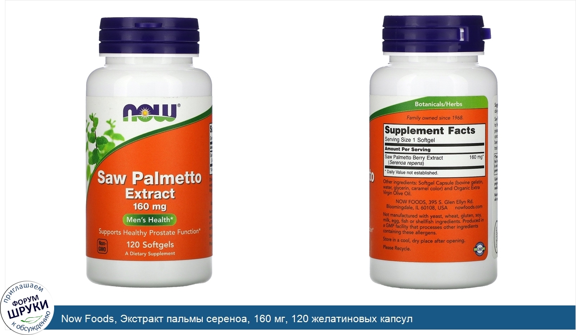 Друзья, если у вас есть отзыв/дополнение/комментарий/вопрос относительно Now Foods, Экстракт пальмы сереноа, 160 мг, 120 желатиновых капсул - напишите его ответом в эту тему (это будет полезно всему сообществу в целом и вам в отдельности).