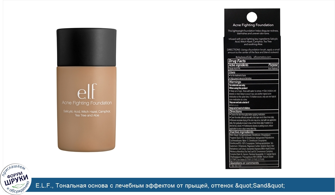 Друзья, если у вас есть отзыв/дополнение/комментарий/вопрос относительно E.L.F., Тональная основа с лечебным эффектом от прыщей, оттенок &quot;Sand&quot; (&quot;песочный&quot;), 1,21 жидкой унции (25 мл) - напишите его ответом в эту тему (это будет полезно всему сообществу в целом и вам в отдельности).