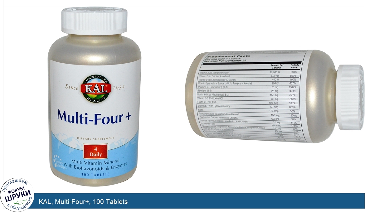 KAL, Multi-Four+, 100 Tablets