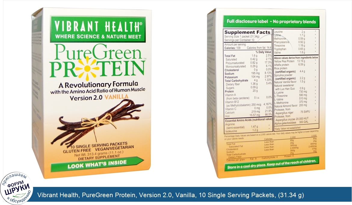 Друзья, если у вас есть отзыв/дополнение/комментарий/вопрос относительно Vibrant Health, PureGreen Protein, Version 2.0, Vanilla, 10 Single Serving Packets, (31.34 g) Per Packet - напишите его ответом в эту тему (это будет полезно всему сообществу в целом и вам в отдельности).