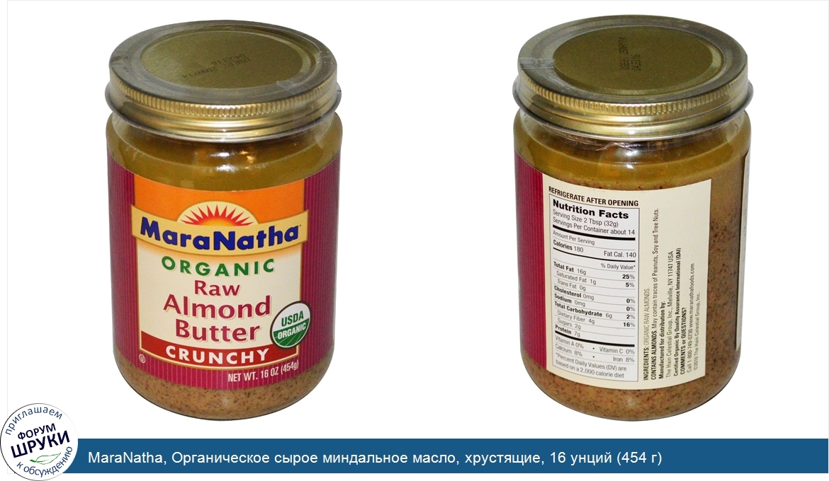 Друзья, если у вас есть отзыв/дополнение/комментарий/вопрос относительно MaraNatha, Органическое сырое миндальное масло, хрустящие, 16 унций (454 г) - напишите его ответом в эту тему (это будет полезно всему сообществу в целом и вам в отдельности).