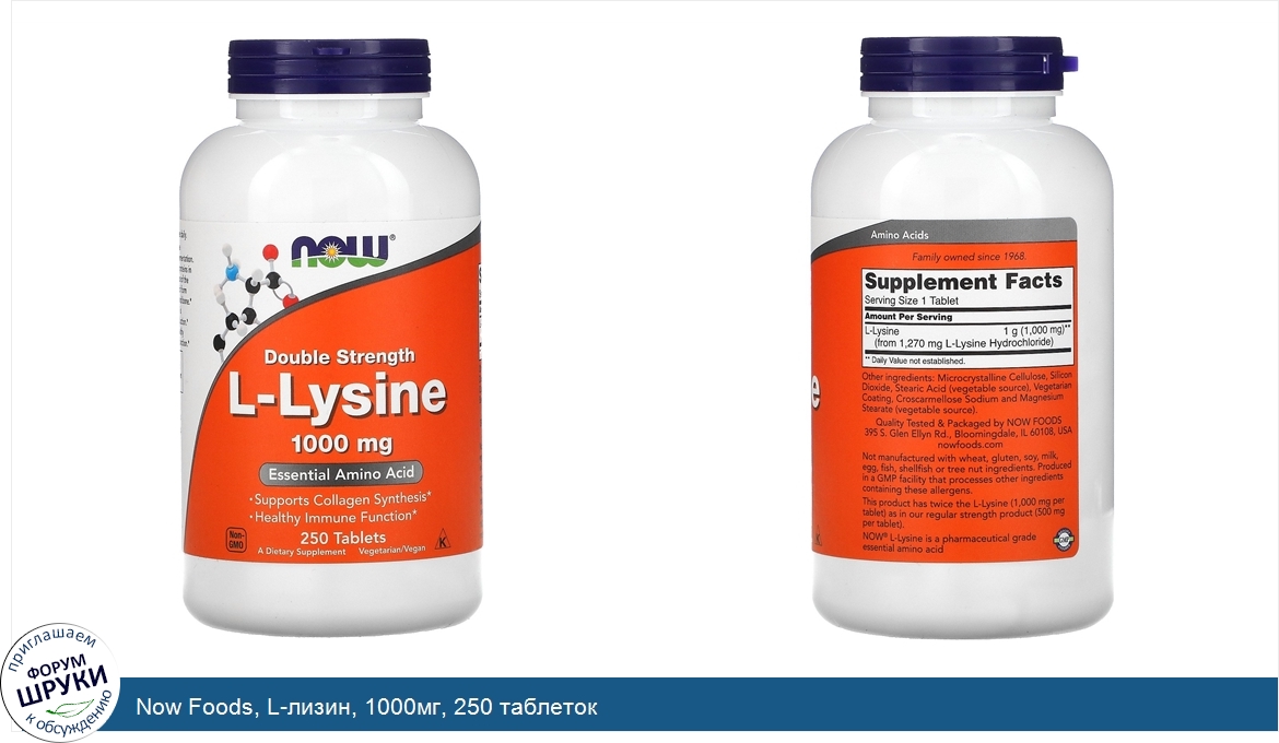 Друзья, если у вас есть отзыв/дополнение/комментарий/вопрос относительно Now Foods, L-лизин, 1000мг, 250 таблеток - напишите его ответом в эту тему (это будет полезно всему сообществу в целом и вам в отдельности).