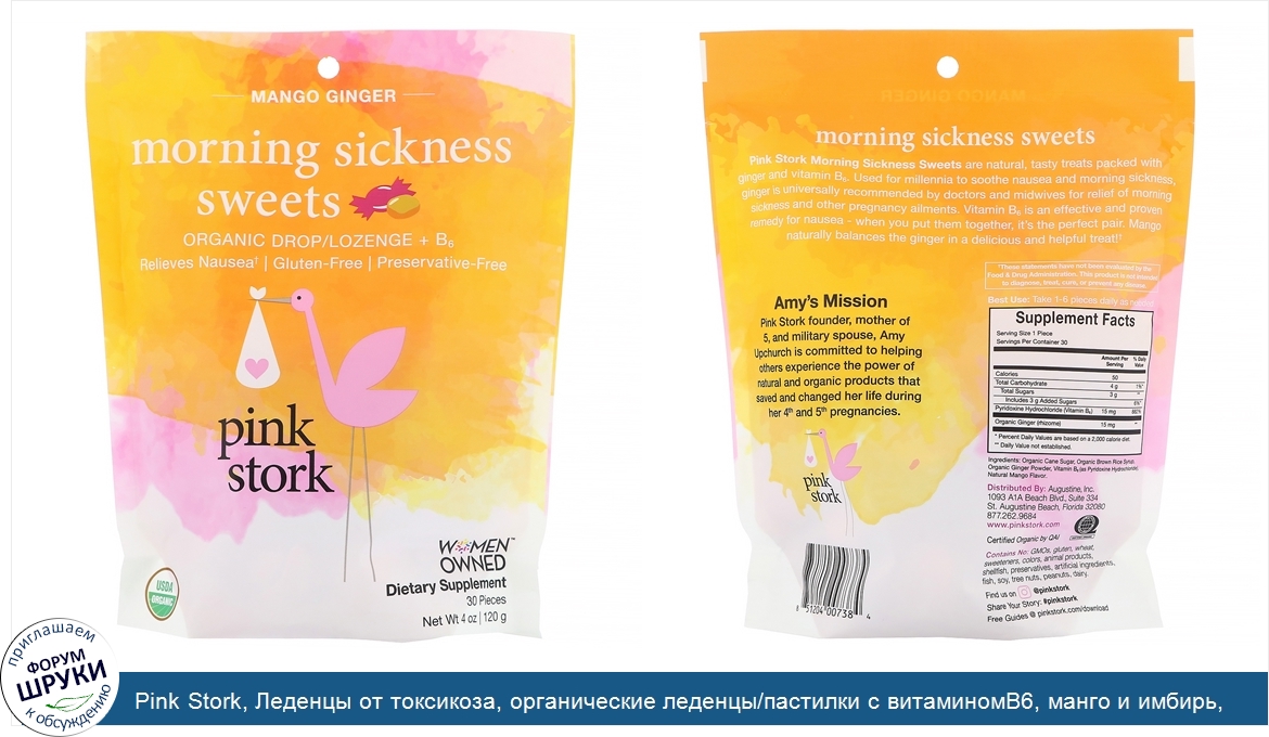 Друзья, если у вас есть отзыв/дополнение/комментарий/вопрос относительно Pink Stork, Леденцы от токсикоза, органические леденцы/пастилки с витаминомB6, манго и имбирь, 120г (4унции) - напишите его ответом в эту тему (это будет полезно всему сообществу в целом и вам в отдельности).