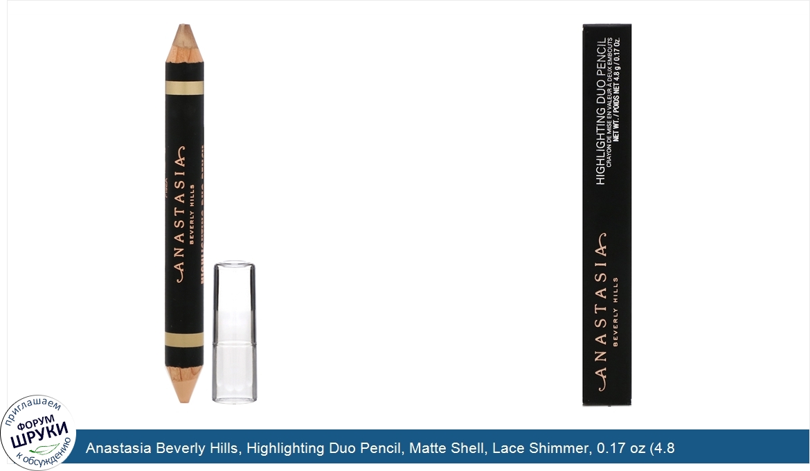 Друзья, если у вас есть отзыв/дополнение/комментарий/вопрос относительно Anastasia Beverly Hills, Highlighting Duo Pencil, Matte Shell, Lace Shimmer, 0.17 oz (4.8 g) - напишите его ответом в эту тему (это будет полезно всему сообществу в целом и вам в отдельности).