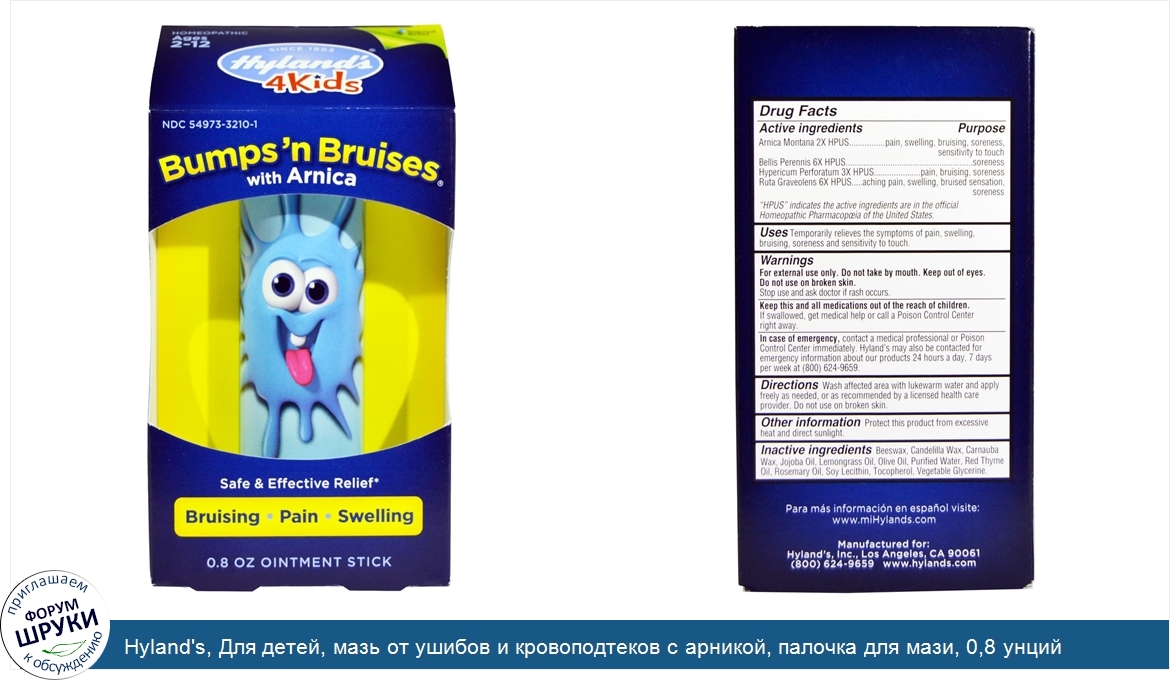 Друзья, если у вас есть отзыв/дополнение/комментарий/вопрос относительно Hyland's, Для детей, мазь от ушибов и кровоподтеков с арникой, палочка для мази, 0,8 унций - напишите его ответом в эту тему (это будет полезно всему сообществу в целом и вам в отдельности).
