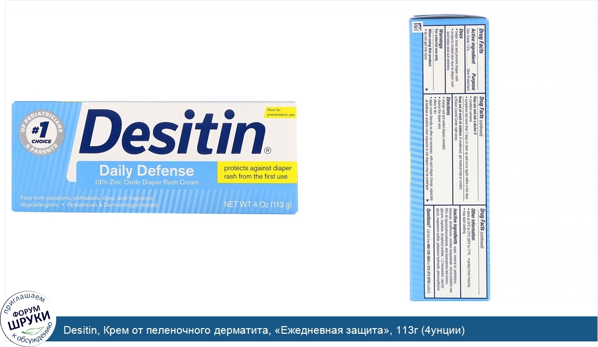 Друзья, если у вас есть отзыв/дополнение/комментарий/вопрос относительно Desitin, Крем от пеленочного дерматита, «Ежедневная защита», 113г (4унции) - напишите его ответом в эту тему (это будет полезно всему сообществу в целом и вам в отдельности).