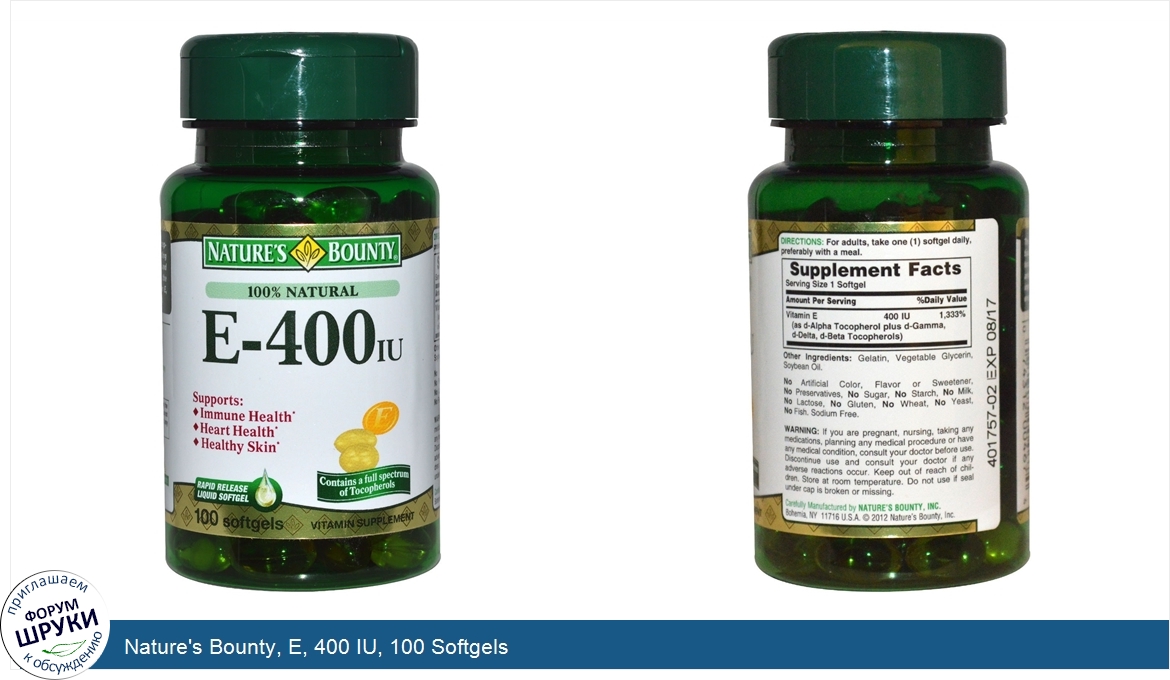 Nature's Bounty, E, 400 IU, 100 Softgels