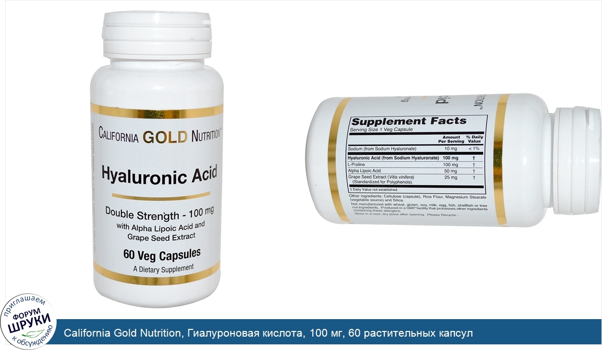 ru California Gold Nutrition, Гиалуроновая кислота, 100 мг, 60 растительных капсул