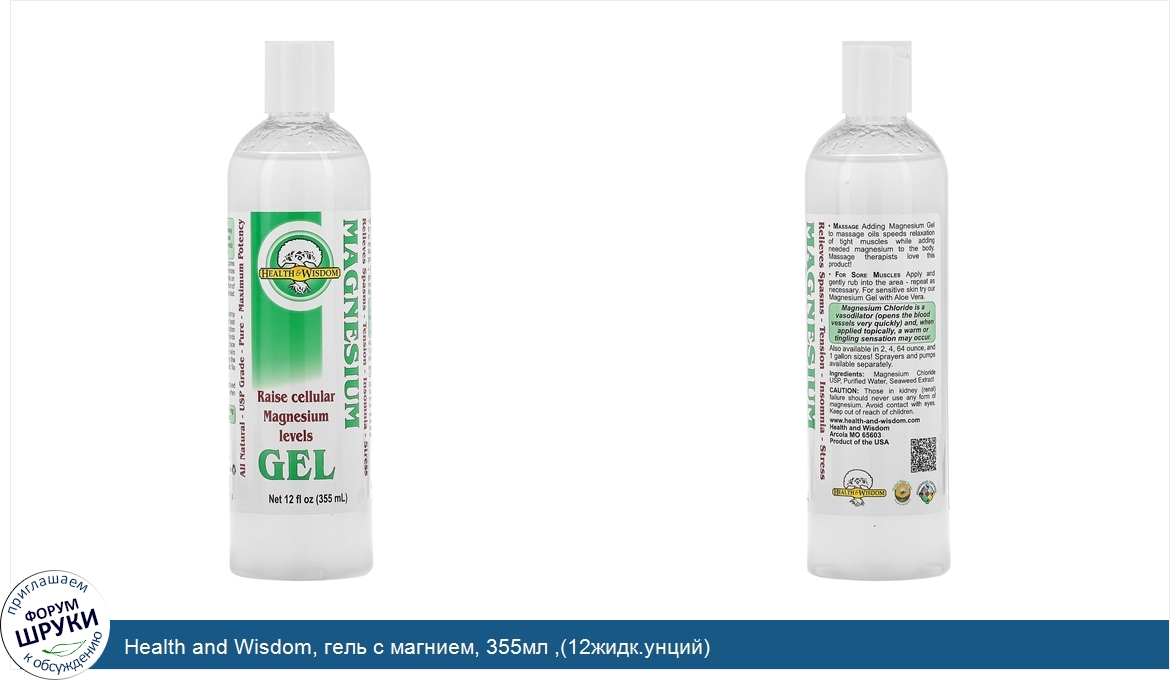 Друзья, если у вас есть отзыв/дополнение/комментарий/вопрос относительно Health and Wisdom, гель с магнием, 355мл ,(12жидк.унций) - напишите его ответом в эту тему (это будет полезно всему сообществу в целом и вам в отдельности).