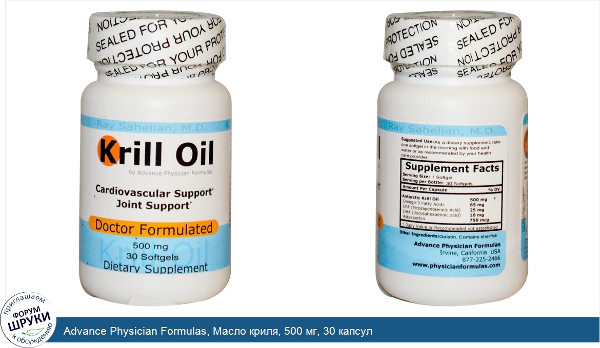 Друзья, если у вас есть отзыв/дополнение/комментарий/вопрос относительно Advance Physician Formulas, Масло криля, 500 мг, 30 капсул - напишите его ответом в эту тему (это будет полезно всему сообществу в целом и вам в отдельности).