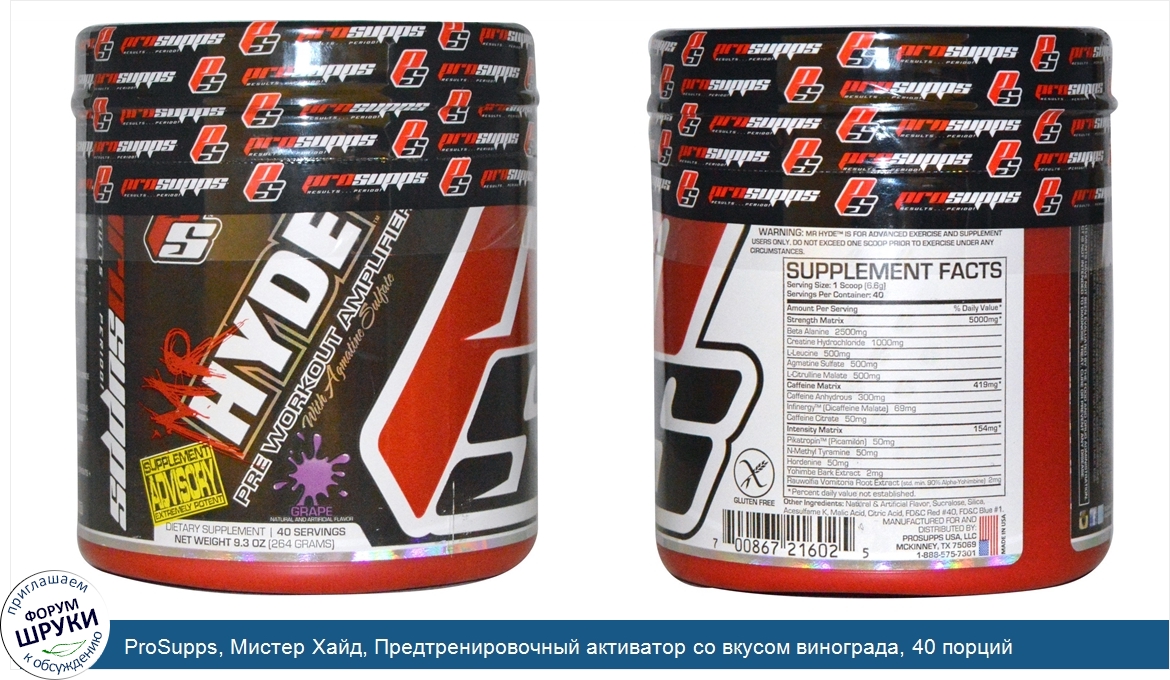 ru ProSupps, Мистер Хайд, Предтренировочный активатор со вкусом винограда, 40 порций