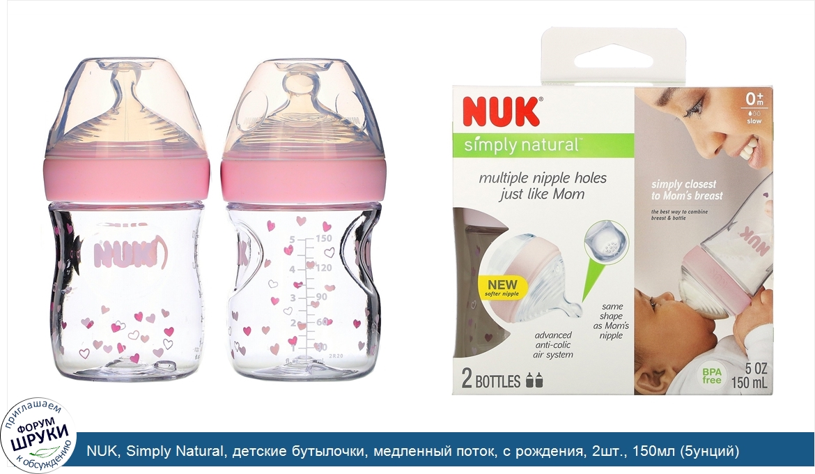 Друзья, если у вас есть отзыв/дополнение/комментарий/вопрос относительно NUK, Simply Natural, детские бутылочки, медленный поток, с рождения, 2шт., 150мл (5унций) - напишите его ответом в эту тему (это будет полезно всему сообществу в целом и вам в отдельности).