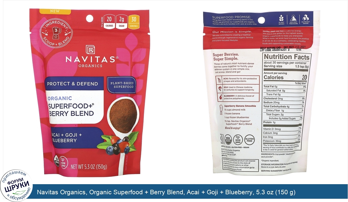 Друзья, если у вас есть отзыв/дополнение/комментарий/вопрос относительно Navitas Organics, Organic Superfood + Berry Blend, Acai + Goji + Blueberry, 5.3 oz (150 g) - напишите его ответом в эту тему (это будет полезно всему сообществу в целом и вам в отдельности).