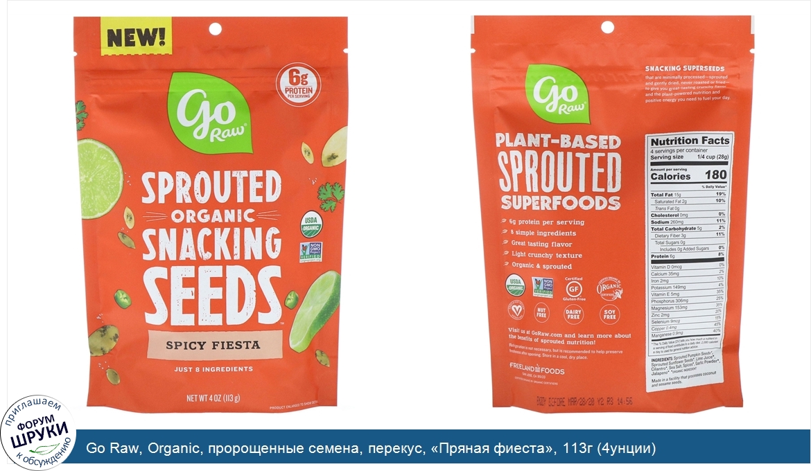 Друзья, если у вас есть отзыв/дополнение/комментарий/вопрос относительно Go Raw, Organic, пророщенные семена, перекус, «Пряная фиеста», 113г (4унции) - напишите его ответом в эту тему (это будет полезно всему сообществу в целом и вам в отдельности).