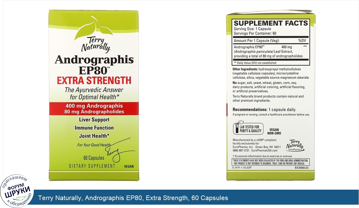 Друзья, если у вас есть отзыв/дополнение/комментарий/вопрос относительно Terry Naturally, Andrographis EP80, Extra Strength, 60 Capsules - напишите его ответом в эту тему (это будет полезно всему сообществу в целом и вам в отдельности).