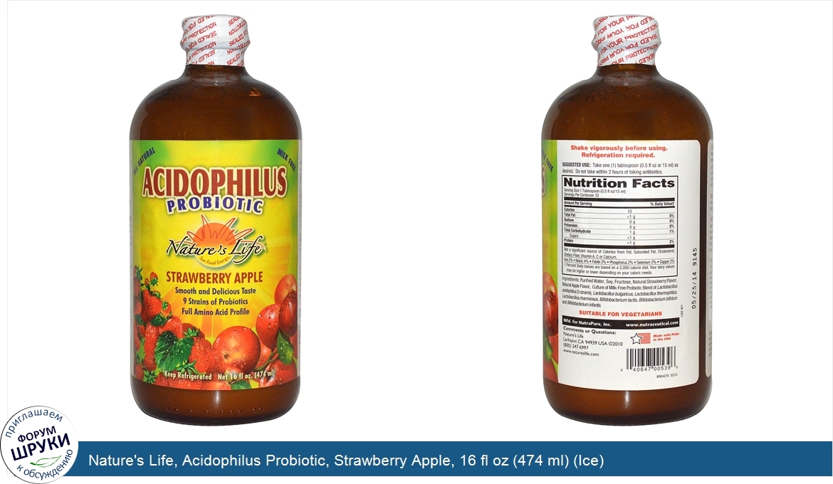 Nature's Life, Acidophilus Probiotic, Strawberry Apple, 16 fl oz (474 ml) (Ice)