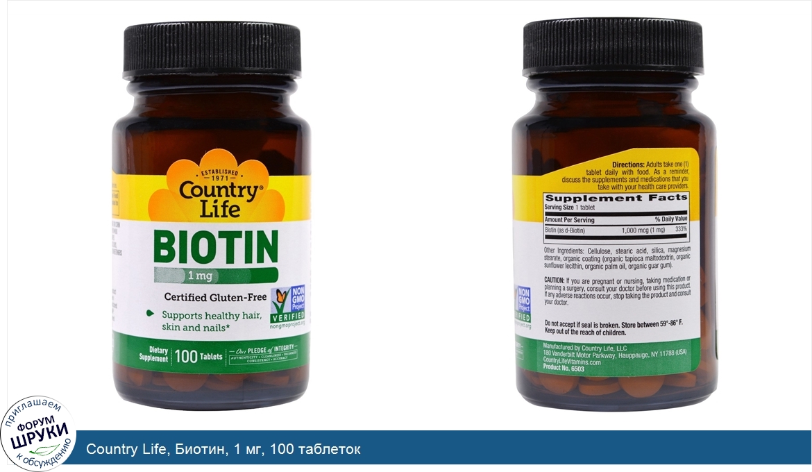 ru Country Life, Биотин, 1 мг, 100 таблеток