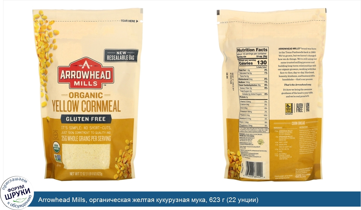 ru Arrowhead Mills, органическая желтая кукурузная мука, 623 г (22 унции)