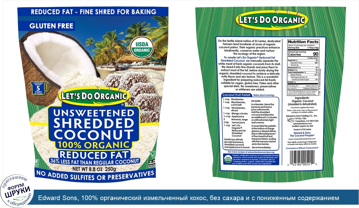 Друзья, если у вас есть отзыв/дополнение/комментарий/вопрос относительно Edward Sons, 100% органический измельченный кокос, без сахара и с пониженным содержанием жиров, 8,8 унции (250 г) - напишите его ответом в эту тему (это будет полезно всему сообществу в целом и вам в отдельности).