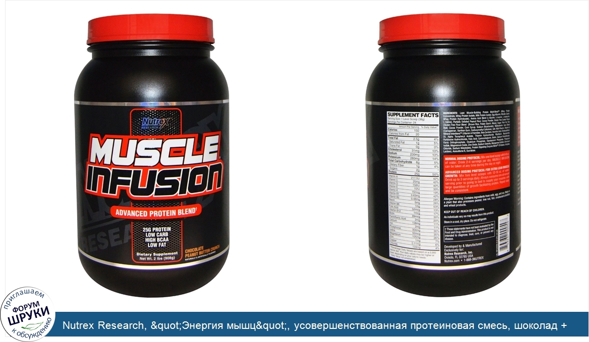 Nutrex Research. 25 г белка. Низкое содержание углеводов. Высокое содержание BCAA. Низкое содержание жиров. Пищевая добавка. Натуральные и искусственные ароматизаторы. Характеристики продуктов Muscle Infusion. 25...