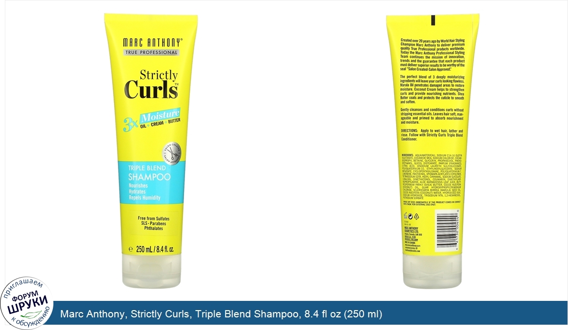 Друзья, если у вас есть отзыв/дополнение/комментарий/вопрос относительно Marc Anthony, Strictly Curls, Triple Blend Shampoo, 8.4 fl oz (250 ml) - напишите его ответом в эту тему (это будет полезно всему сообществу в целом и вам в отдельности).