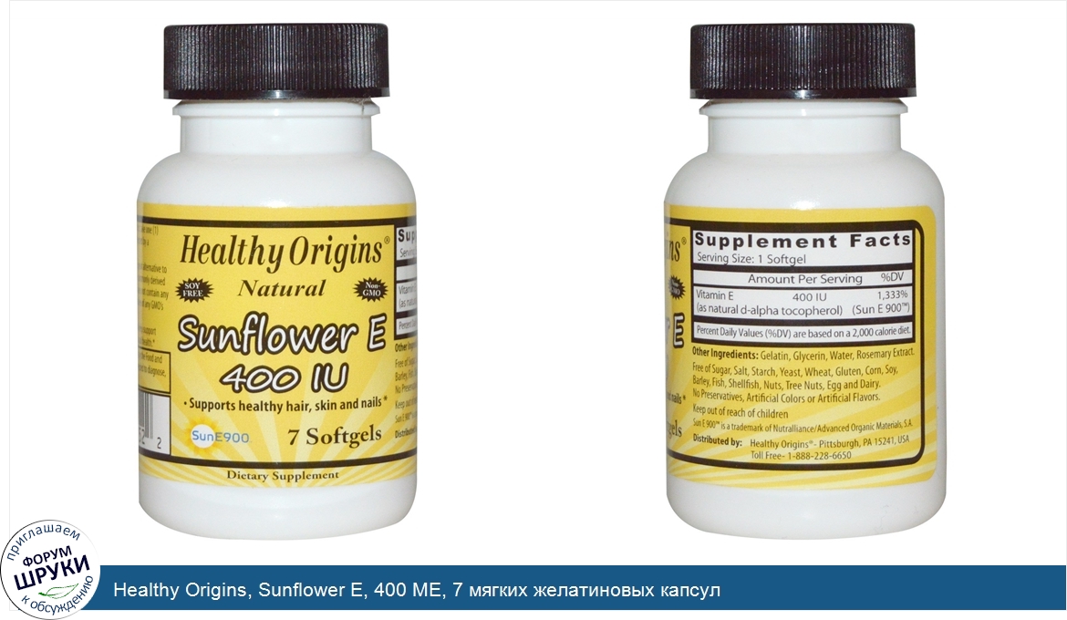 Друзья, если у вас есть отзыв/дополнение/комментарий/вопрос относительно Healthy Origins, Sunflower E, 400 МЕ, 7 мягких желатиновых капсул - напишите его ответом в эту тему (это будет полезно всему сообществу в целом и вам в отдельности).