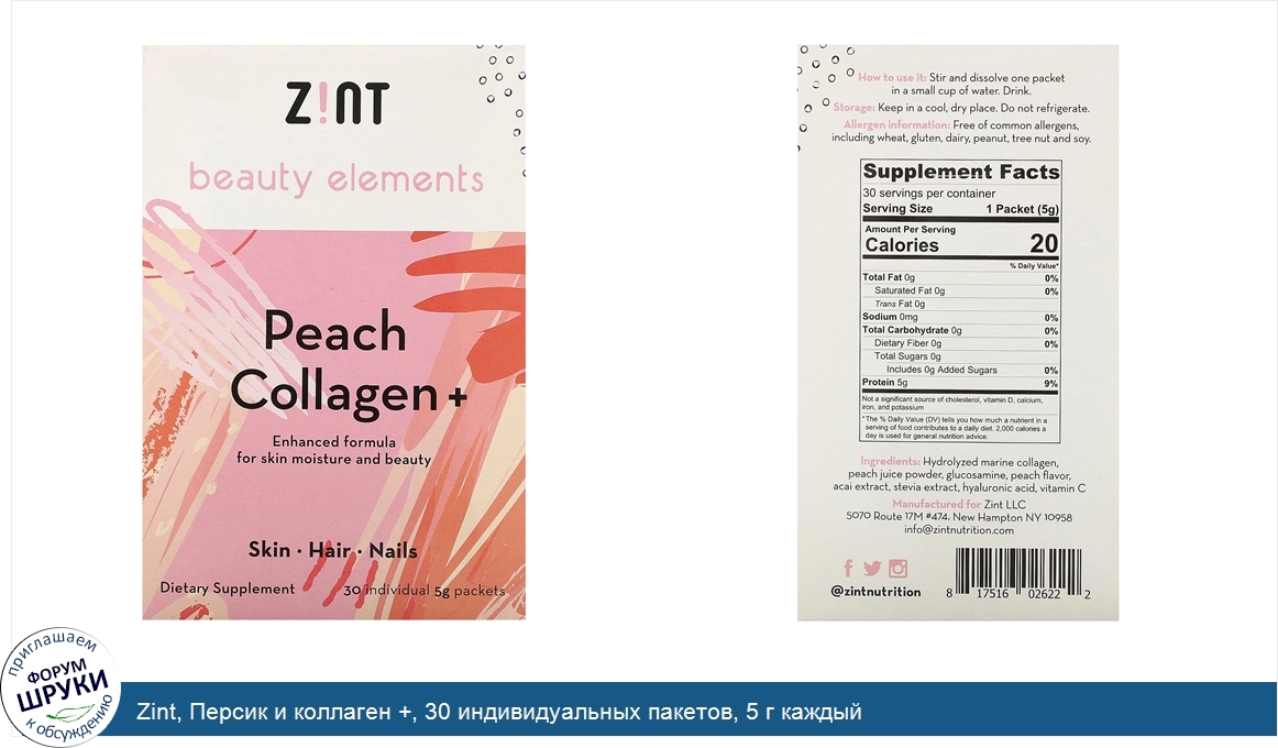 Друзья, если у вас есть отзыв/дополнение/комментарий/вопрос относительно Zint, Персик и коллаген +, 30 индивидуальных пакетов, 5 г каждый - напишите его ответом в эту тему (это будет полезно всему сообществу в целом и вам в отдельности).