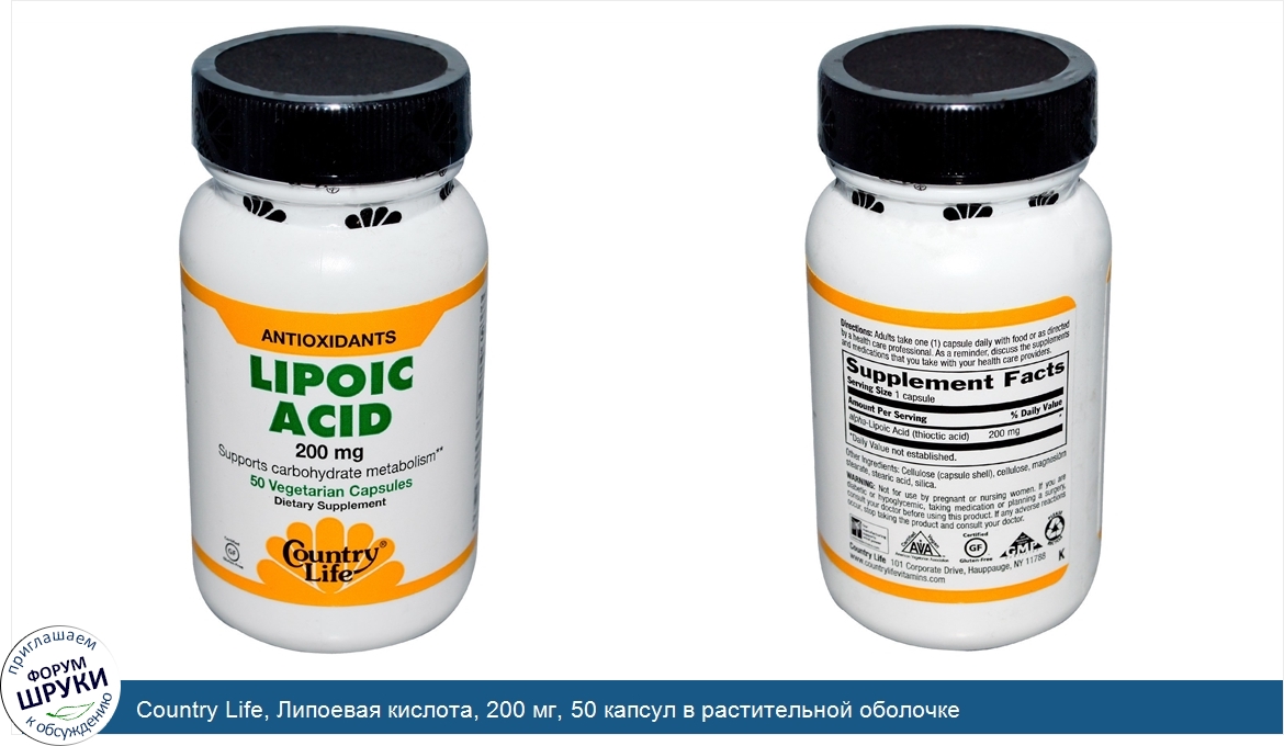 Друзья, если у вас есть отзыв/дополнение/комментарий/вопрос относительно Country Life, Липоевая кислота, 200 мг, 50 капсул в растительной оболочке - напишите его ответом в эту тему (это будет полезно всему сообществу в целом и вам в отдельности).
