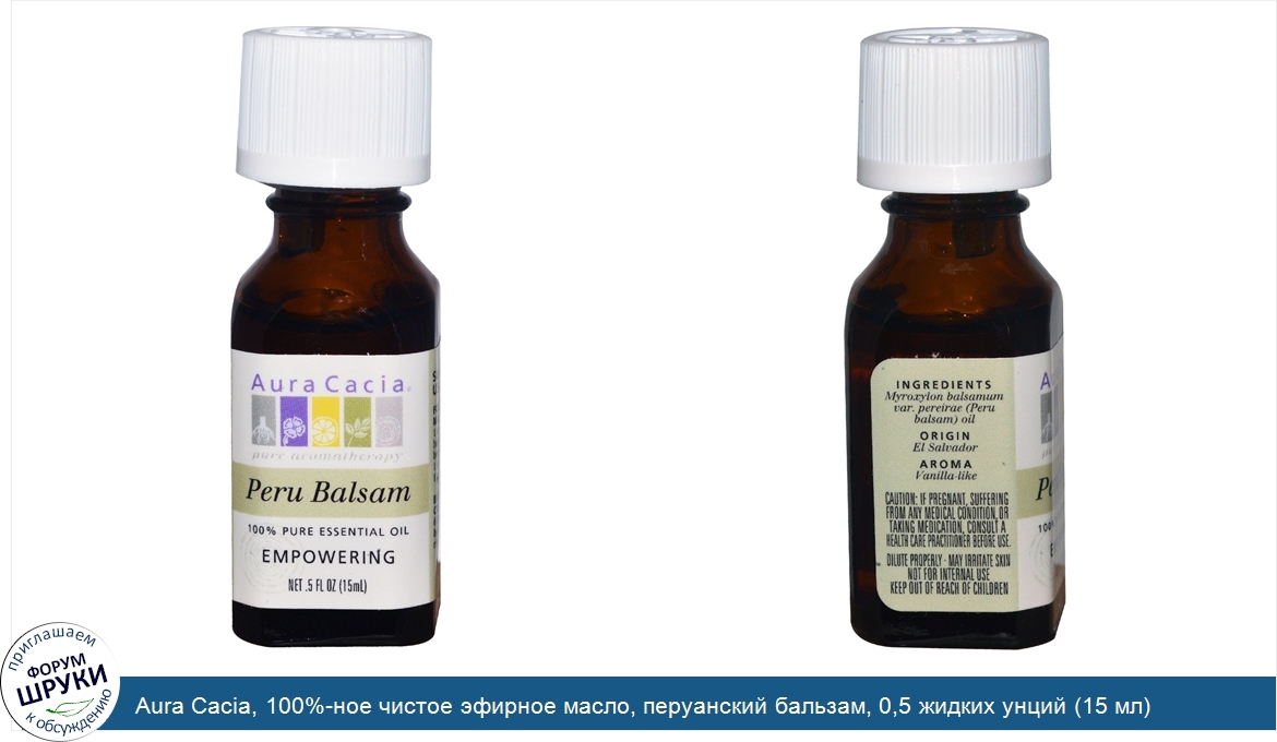 Aura Cacia, 100%-ное чистое эфирное масло, перуанский бальзам, 0,5 жидких унций (15 мл)