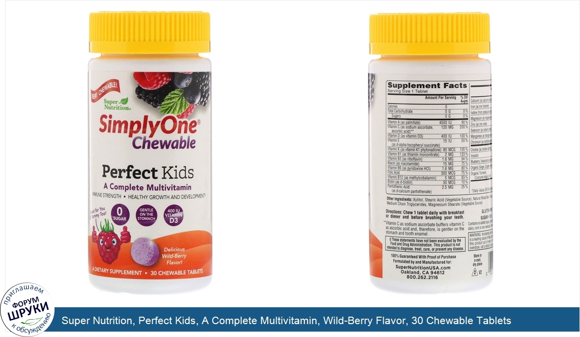 Super Nutrition, Perfect Kids, A Complete Multivitamin, Wild-Berry Flavor, 30 Chewable Tablets