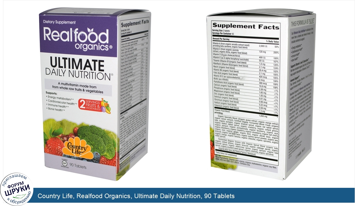 ru Country Life, Realfood Organics, Ultimate Daily Nutrition, 90 Tablets