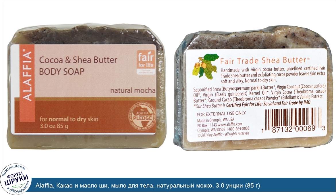Друзья, если у вас есть отзыв/дополнение/комментарий/вопрос относительно Alaffia, Какао и масло ши, мыло для тела, натуральный мокко, 3,0 унции (85 г) - напишите его ответом в эту тему (это будет полезно всему сообществу в целом и вам в отдельности).