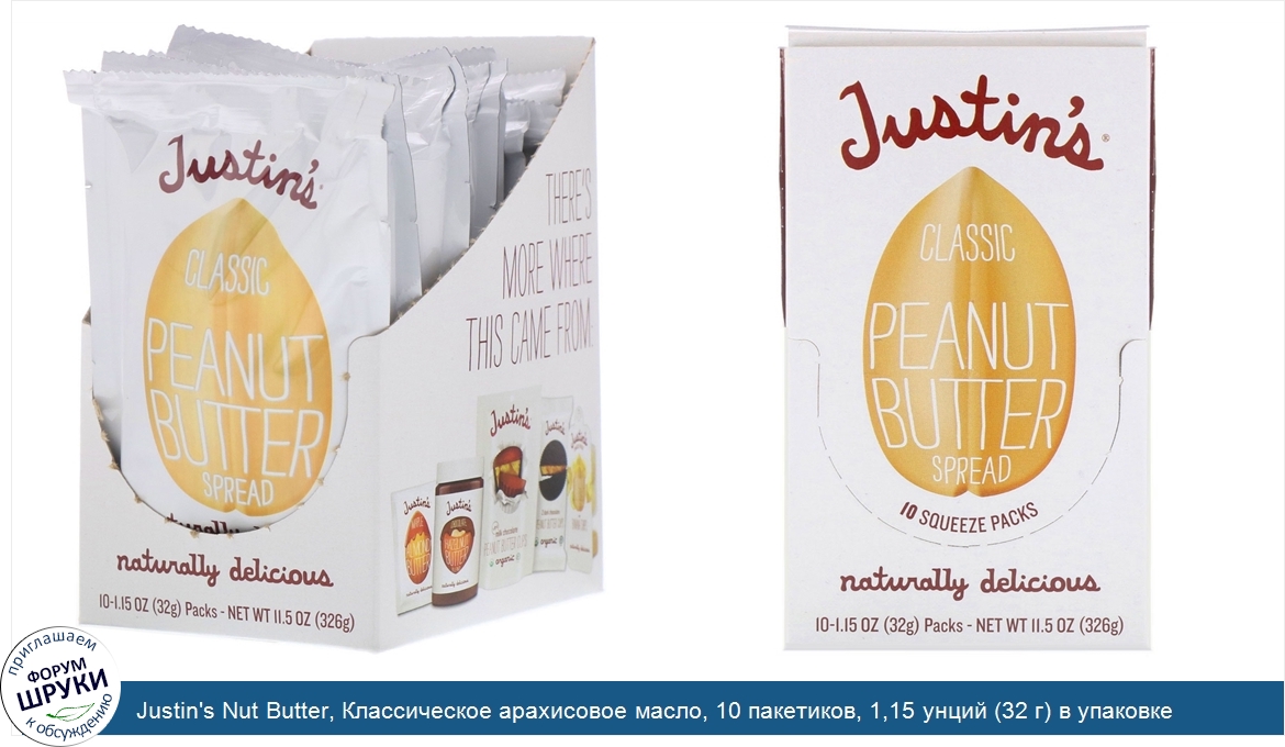 Друзья, если у вас есть отзыв/дополнение/комментарий/вопрос относительно Justin's Nut Butter, Классическое арахисовое масло, 10 пакетиков, 1,15 унций (32 г) в упаковке - напишите его ответом в эту тему (это будет полезно всему сообществу в целом и вам в отдельности).