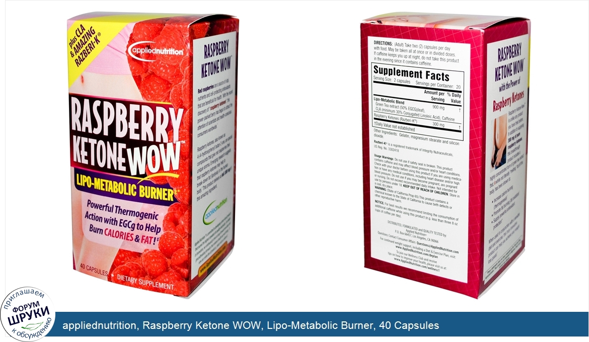 appliednutrition, Raspberry Ketone WOW, Lipo-Metabolic Burner, 40 Capsules