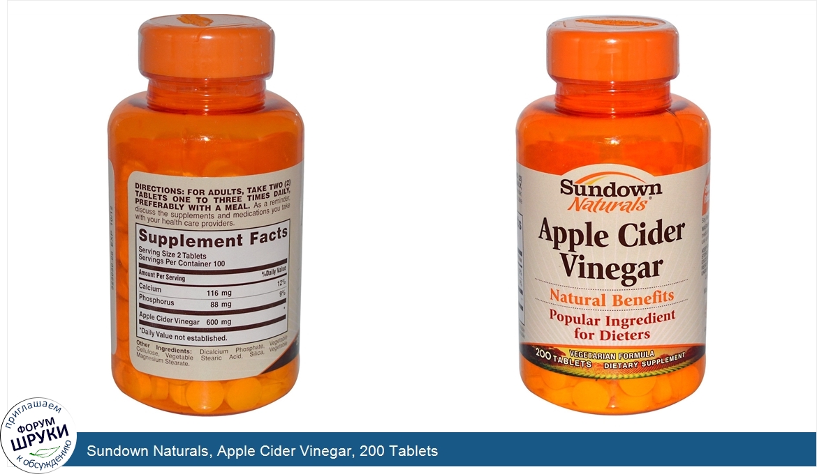 Друзья, если у вас есть отзыв/дополнение/комментарий/вопрос относительно Sundown Naturals, Apple Cider Vinegar, 200 Tablets - напишите его ответом в эту тему (это будет полезно всему сообществу в целом и вам в отдельности).