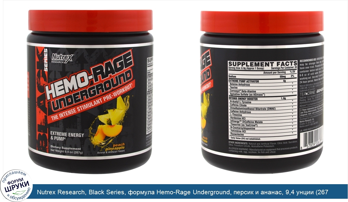 Друзья, если у вас есть отзыв/дополнение/комментарий/вопрос относительно Nutrex Research, Black Series, формула Hemo-Rage Underground, персик и ананас, 9,4 унции (267 г) - напишите его ответом в эту тему (это будет полезно всему сообществу в целом и вам в отдельности).