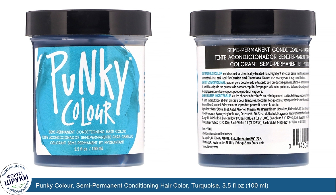 Друзья, если у вас есть отзыв/дополнение/комментарий/вопрос относительно Punky Colour, Semi-Permanent Conditioning Hair Color, Turquoise, 3.5 fl oz (100 ml) - напишите его ответом в эту тему (это будет полезно всему сообществу в целом и вам в отдельности).