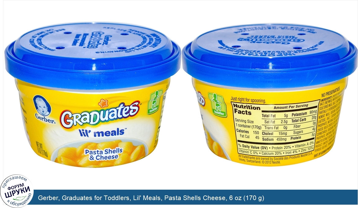 Друзья, если у вас есть отзыв/дополнение/комментарий/вопрос относительно Gerber, Graduates for Toddlers, Lil' Meals, Pasta Shells Cheese, 6 oz (170 g) - напишите его ответом в эту тему (это будет полезно всему сообществу в целом и вам в отдельности).