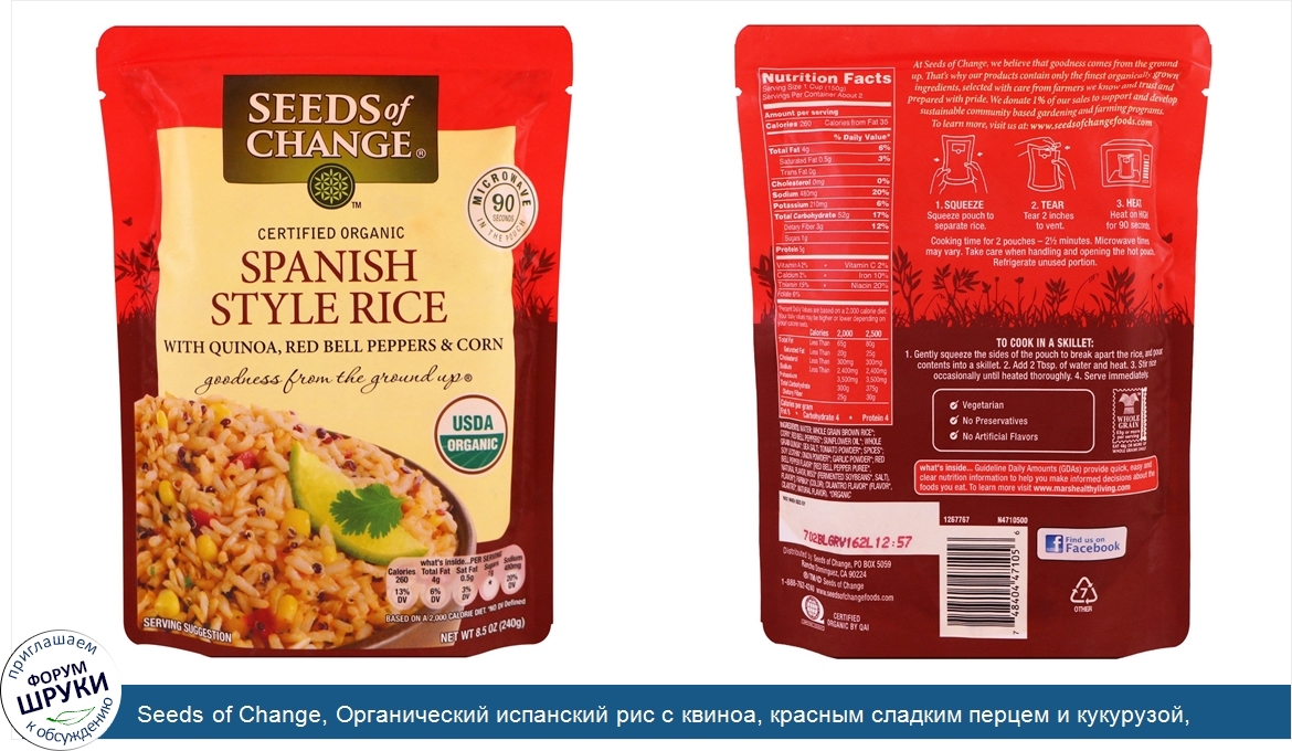 Друзья, если у вас есть отзыв/дополнение/комментарий/вопрос относительно Seeds of Change, Органический испанский рис с квиноа, красным сладким перцем и кукурузой, 8,5 унц. (240 г) - напишите его ответом в эту тему (это будет полезно всему сообществу в целом и вам в отдельности).